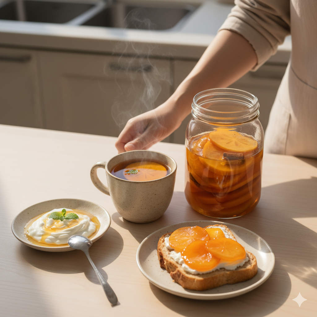 단감 계피청은 그 자체로도 훌륭하지만, 다른 음식과 곁들이면 더욱 풍성한 맛을 즐길 수 있습니다. 환절기, 따뜻한 단감 계피청과 함께 곁들이면 좋을 음식들을 소개합니다.