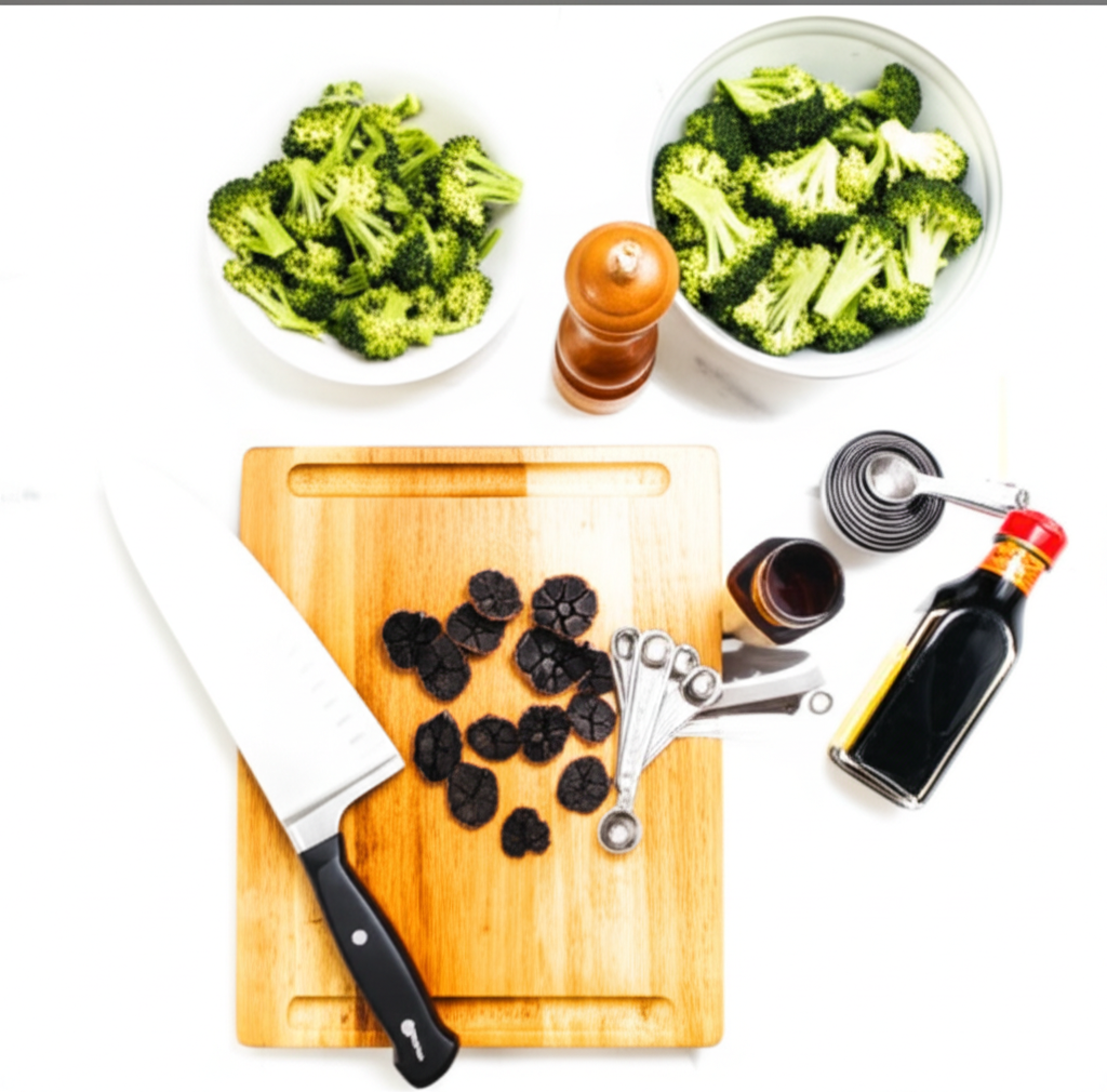 흑마늘은 편으로 썰고, 브로콜리는 먹기 좋게 손질하여 끓는 물에 살짝 데쳐줍니다. (데친 브로콜리는 설포라판 활성화로 항산화 효과 상승)