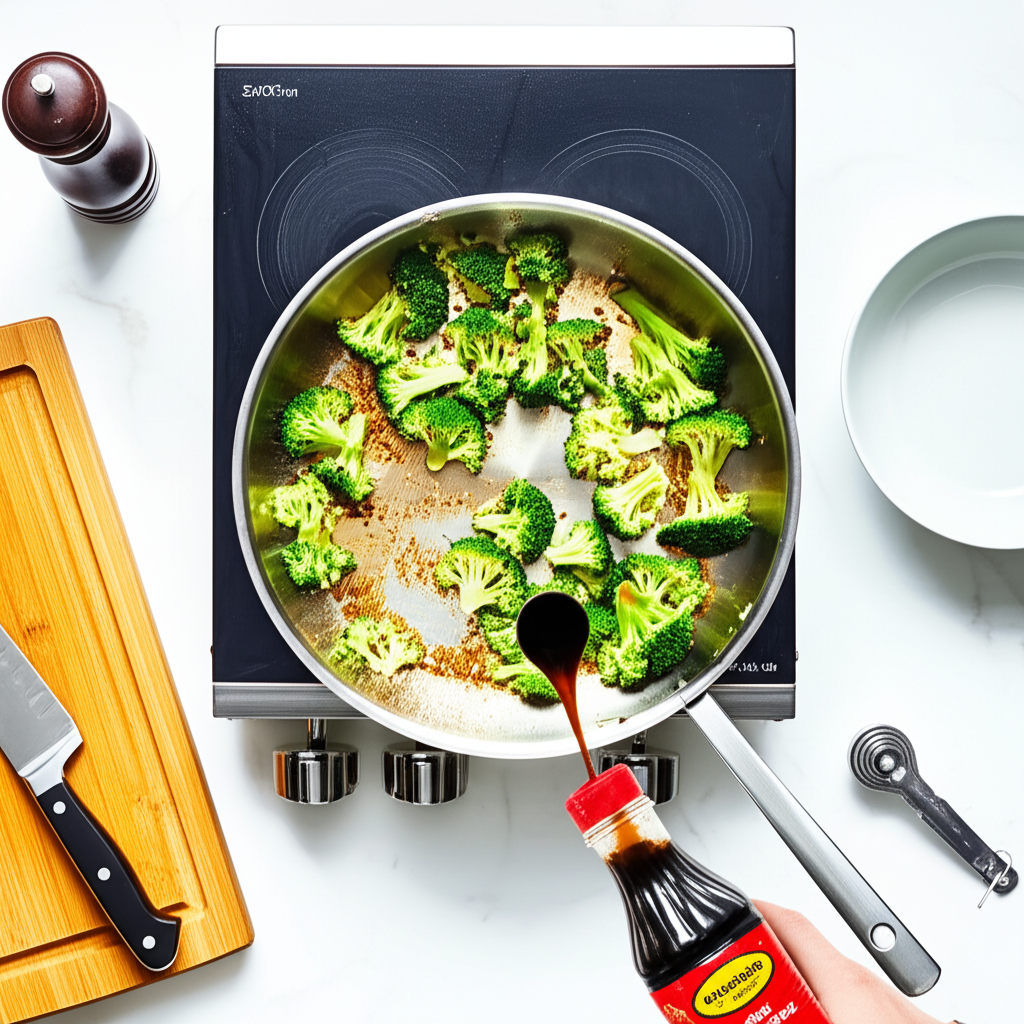 브로콜리를 넣고 간장 1큰술, 굴소스를 넣어 간을 맞추며 볶아줍니다.