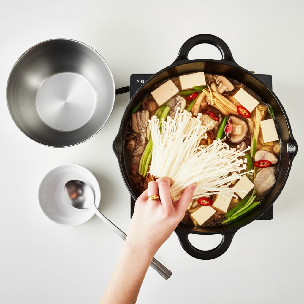 Step 7: 팽이버섯 넣고 마무리