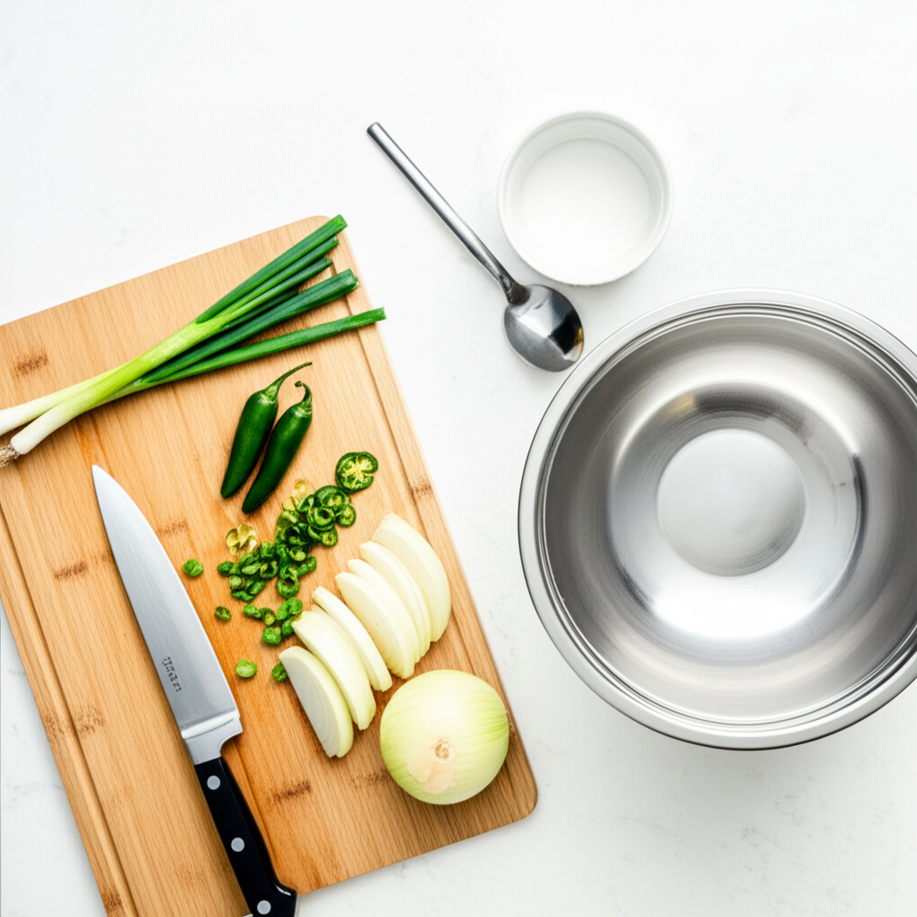 양파는 채 썰고, 대파와 청양고추는 어슷썰기 합니다. (양파의 퀘르세틴은 항산화 작용을 도움)